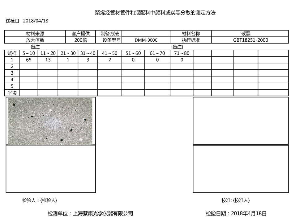 管材炭黑分析評(píng)級(jí)軟件DLT-3000是專門針對(duì)聚烯烴管材、管件和混配料中顏料或炭黑分散性試驗(yàn)開發(fā)的完全符合國家標(biāo)準(zhǔn)-GB/T 18251-2000的顯微圖像分析評(píng)級(jí)軟件。同時(shí)也可以對(duì)顯微顆粒圖像進(jìn)行分析和統(tǒng)計(jì)。